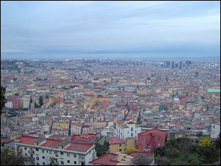 panorama del centro storico da via Tito Angelini, con il Vesuvio sullo sfondo