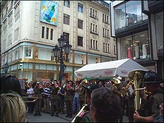 alcuni Bersaglieri, di cui in questi giorni c'è un raduno nella capitale ungherese, suonano in Váci utca