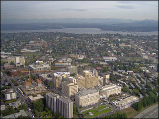 panorama dal 73° piano del Columbia Center verso est, con la Interstate 5 e il Lake Washington